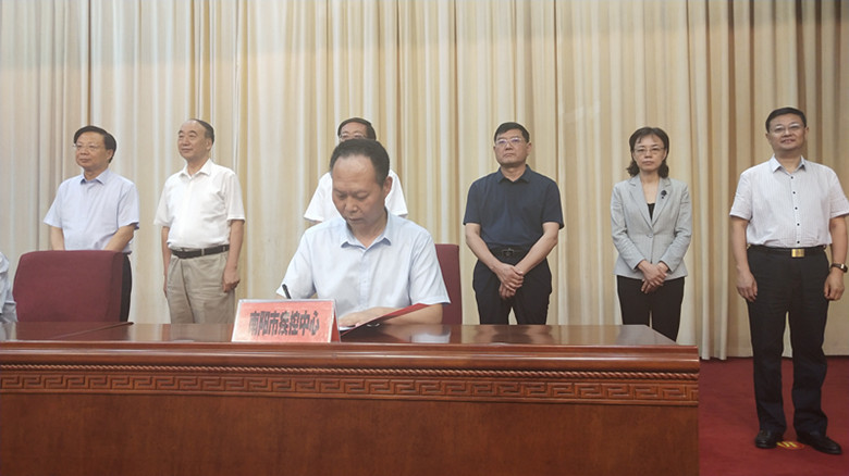 捐赠仪式由农工党河南省委副主委、河南省卫健委副主任黄红霞主持,河南省慈善总会副会长盛国民同志、南阳市副市长阿颖同志分别讲话,南阳市卫健委主任闫广州同志致辞。