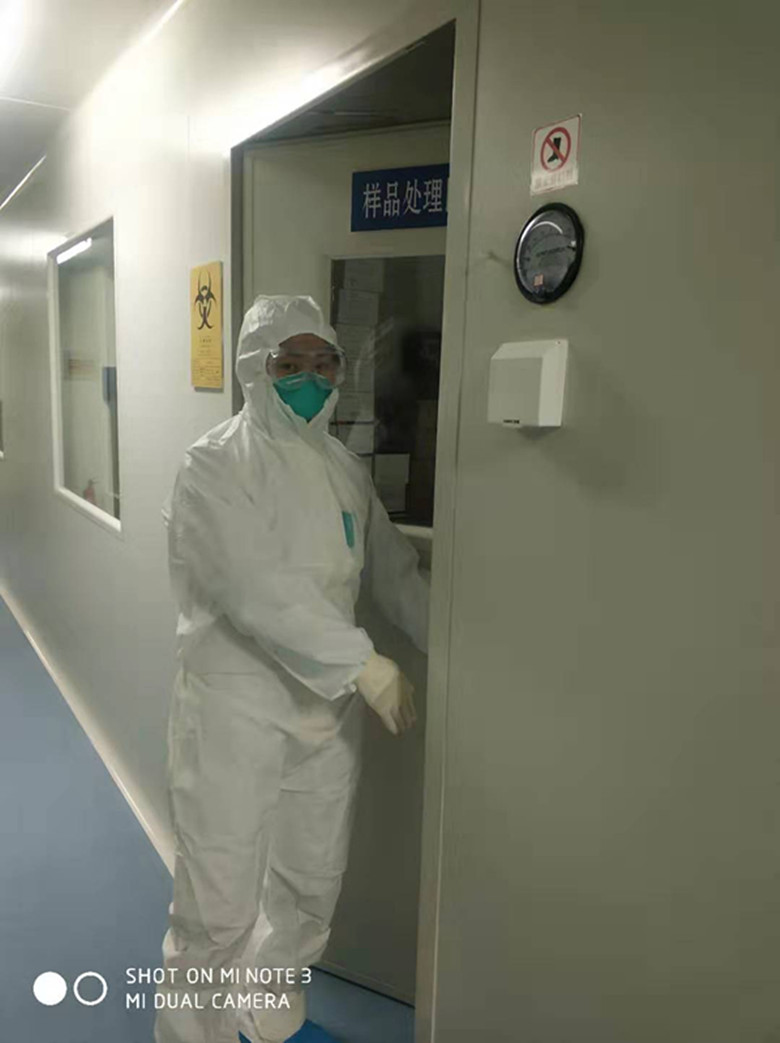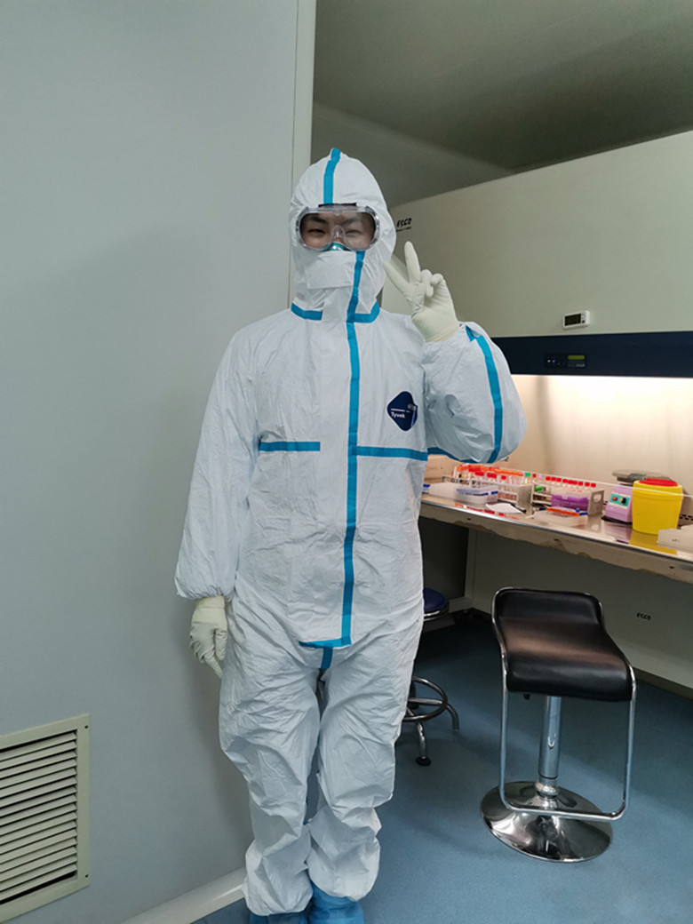 元月23日,已临近春节,清晨吴霖突然接到中心领导通知,南阳出现首个疑似病例,需他送样到郑州省疾控复检。从未接触过此类事件的吴霖和另一位同事冒着大雾急驰郑州,望着省城空荡荡的街道,内心不由得升起莫名的恐慌。第二天返回南阳后,省疾控复核结果出来阳性。消息一出,吴霖第一时间打电话通知家人“不要出门”,而他自己则义无反顾地参加了直接接触病毒的核酸检验工作。吴霖一米八二的身高,穿上通码的防护服,无法伸直腰身,一进试验室6-7个小时下来,身上毛衣袖子都是湿漉漉的,回到家里累的倒头就睡。一天夜班下来,吴霖本该第二天早上八点半回家的,因试样多直到中午十一点才从试验室出来,他习惯地拿出手机一看,竟有七、八个家人打来的未接来电,望着手机里一个个父母与妻子的电话、微信,他仿佛看到了家人焦急的目光……,电话微信里声声的支持和嘱托,更加坚定了他战胜疫情、奋战一线的决心和信心。他现在最大的愿望是期盼着疫情早日结束,好陪女儿学溜冰,“我已承诺她好久了......”吴霖面带愧疚的说道。
