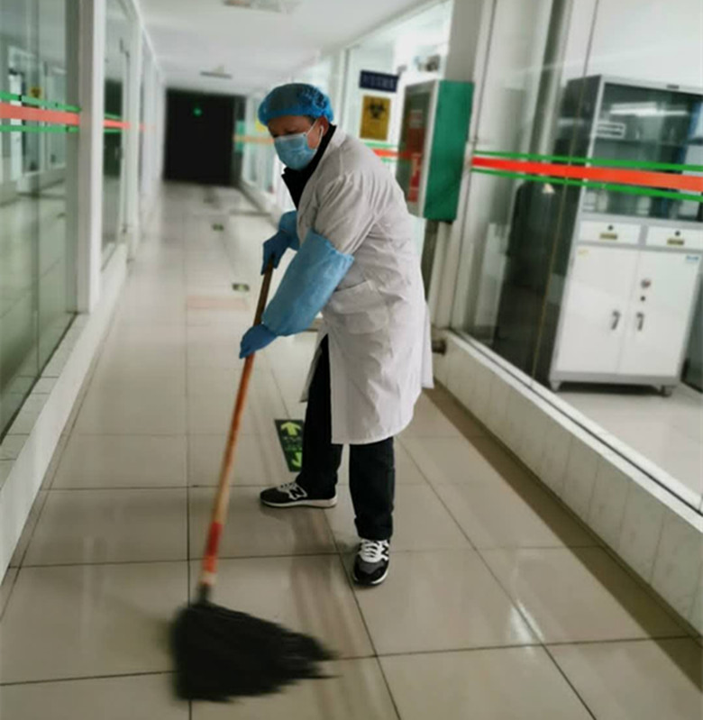 实验结束后,由生物安全和消毒组的成员以严谨的态度对实验产生的医疗垃圾进行专项处理,严格的消杀,一遍又一遍消毒。他们的任务也非常的艰巨,配置消毒药水的过程中,他们常常需要忍受刺鼻的气味,呛得两眼通红,喉咙火辣辣的生疼。疫情紧张期间,消杀工作每天要进行三遍,公共区域的面积大,诸如门把手等一些细微之处不好清理,有时候一天下来,他们累的胳膊都抬不起来。正式因为他们的共同努力,排除了各种隐患,让每一处战场成为一个安全的“家”。若要问起他们都是谁,那就是段磊、李义冲、吴丽娟这几位日常工作中的专家,疫情期间的“神助攻”!