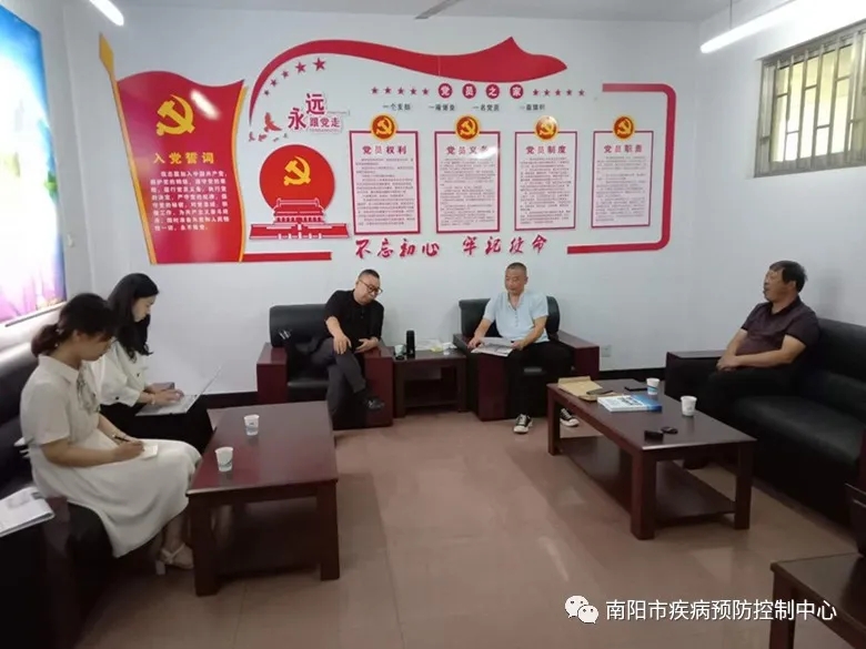 6月11日上午,南阳市疾控中心办公室副主任王航,办公室宣传信息专干师建起、王漫洋一行赴镇平县疾控进行检查指导工作。镇平县卫健委副主任李德强,卫健委健康教育宣传科科长余守淼,疾控中心副主任杨红军等参与会议。